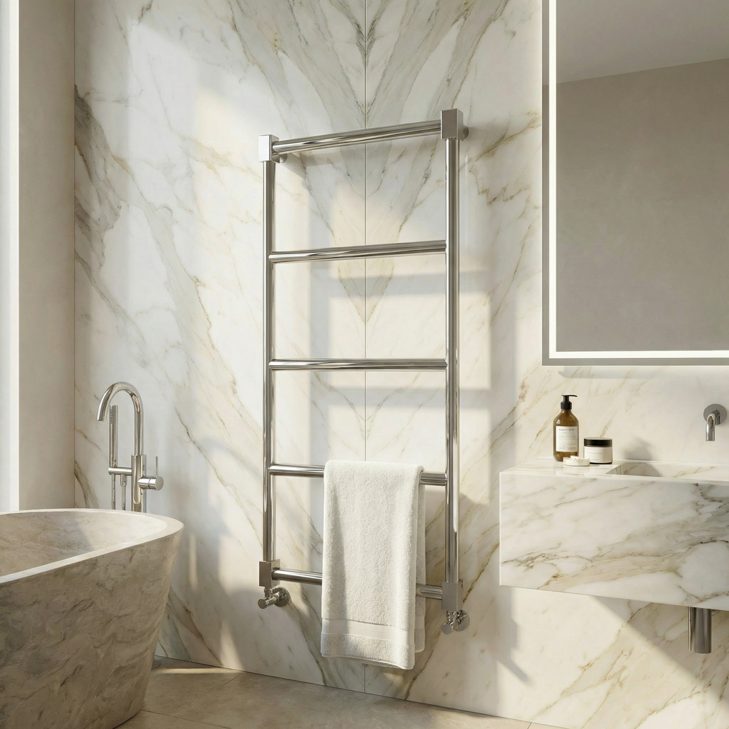 W pełni elektrycznym: Działa niezależnie od sieci CO, idealny jako całoroczna suszarka do ręczników.
